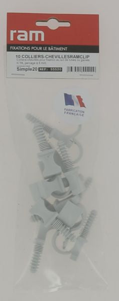 Collier cheville RAMCLIP simple pour tubes et gaines 20 mm 10 pièces