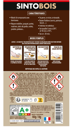 Mastic Sintobois angles & gros trous SINTO chêne 68 g