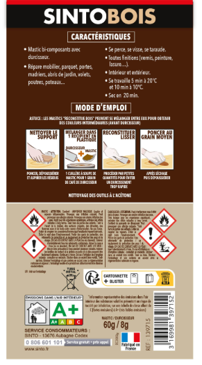 Mastic Sintobois angles & gros trous SINTO sapin 68 g