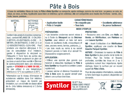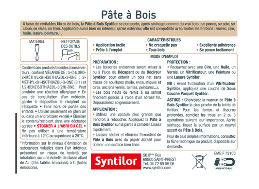 Pâte à bois , SYNTILOR chêne moyen 500 g