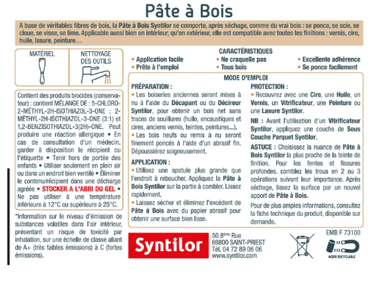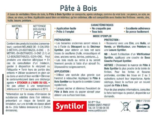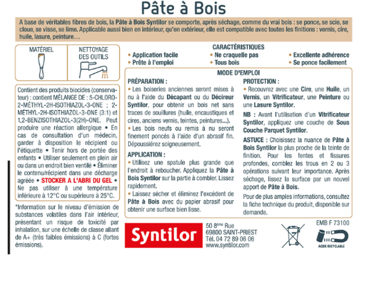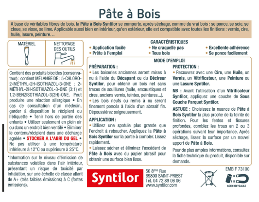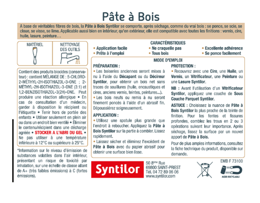Pâte à bois , SYNTILOR chêne moyen 250 g