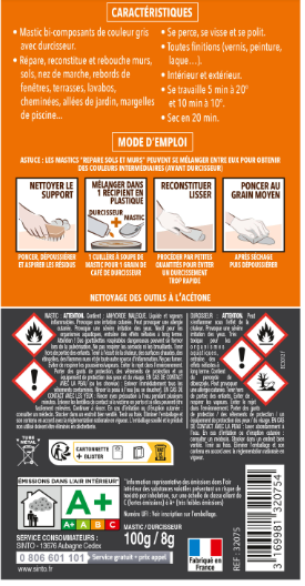 Mastic Sintopierre, mastic et durcisseur SINTO gris 100 g