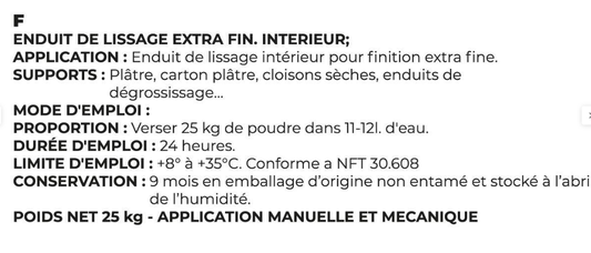 Enduit de lissage en poudre F et de finition BEISSIER 15 kg