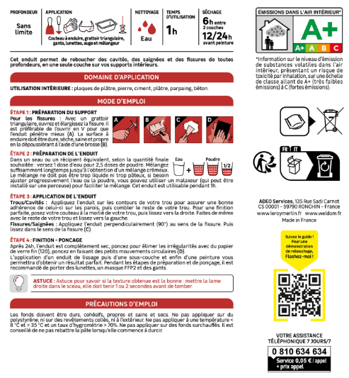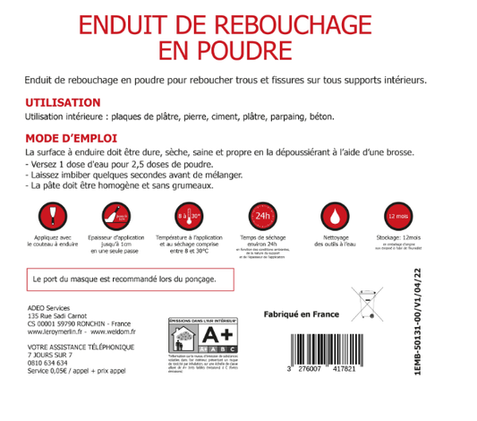 Enduit de rebouchage en poudre blanc 5 kg