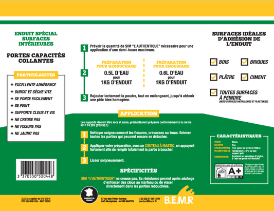Enduit de rebouchage en poudre L'authentique SIM blanc cassé 1 kg