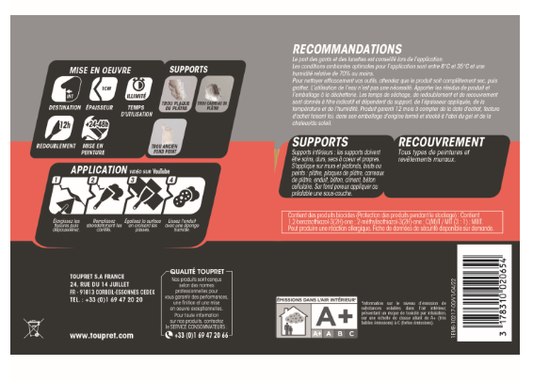 Enduit de rebouchage en pâte Elastique TOUPRET blanc 1 kg