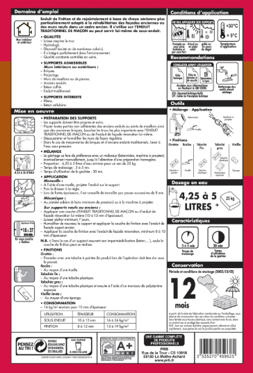 Enduit colle fibré pour iso. thermique par l'ext, haute performance, PRB, 25kg