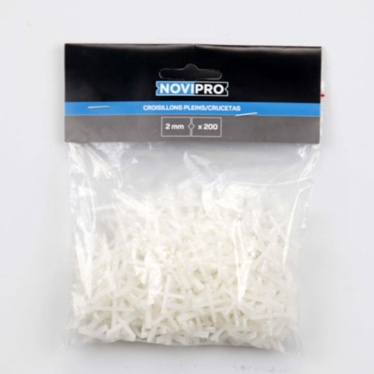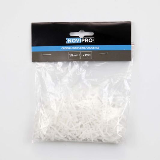 White T-shaped tile spacers, 2 mm thick, bag of 250 pieces