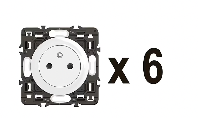 6 prises de courant 2 ports avec terre Legrand Céliane sans plaque