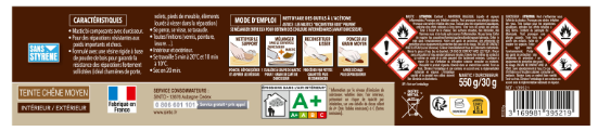 Le mastic charges lourdes Sinto Bois est idéal pour reboucher tous types de trous et reconstituer les angles cassés, des parties manquantes ou abîmées sur des pièces en bois. Résistantes aux poids importants et chocs, convient aux pièces soumises à des charges lourdes tels que volets, pieds de meuble, charnière de porte, gond etc. Facile d'application, sec en 20min, se perce , se visse et se taraude facilement, idéal pour toutes finitions (vernis, peinture, lasure). / Existe également en teinte sapin, chêne et acajou. Possibilité de mélanger les teintes entre elles pour obtenir la nuance souhaitée. / Existe en 190g.
