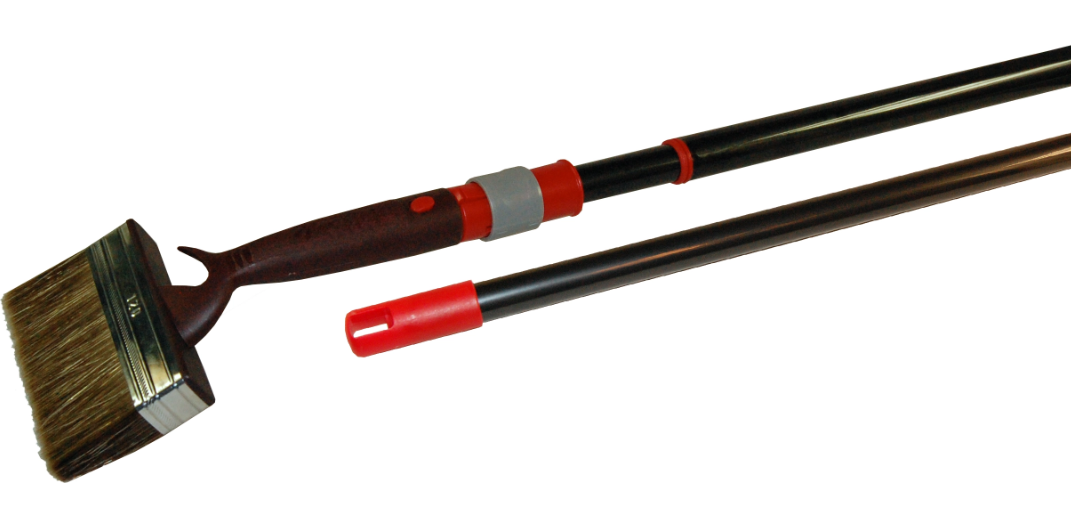 Fibres adaptées aux applications des traitements et décoration des bois. Brosse coudée sur perche télescopique pour plus de confort de travail Verrou d'assemblage brosse sur perche pour plus de sureté.