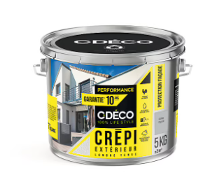 | Usage | Ce crépi s'applique sur tous les supports minéraux, béton, brique, parpaing, et sur les anciennes peintures adhérentes. |