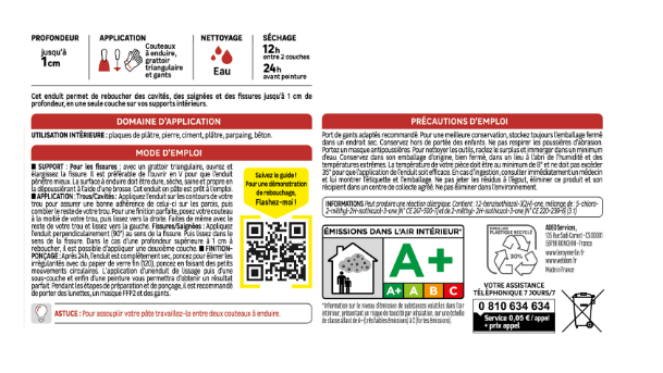 | Nom du produit | Enduit de rebouchage |