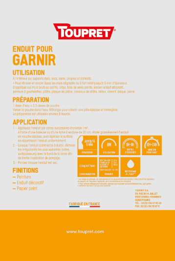 | Nom du produit | Enduit de rénovation et garnissant |