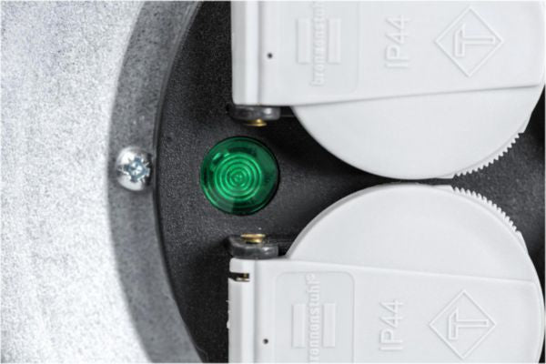 | Description | Enrouleur électrique équipé de 4 prises 2P+T 16A/230V~ avec clapets à fermeture automatique, d'un voyant de présence de tension, d'un disjoncteur thermique - utilisation en extérieur Dérouleur de câble avec voyant de présence de tension LED lumineux intégré au bloc prises indiquant immédiatement si l'enrouleur est sous tension et évite ainsi les déplacements inutiles Enrouleur électrique muni d'une poignée de transport "cablepilot" (conçu pour gaucher et droitier) avec un guidage parfait du câble, bascule de chaque côté pour un transport et une accroche facile Dévidoir électrique doté d'un bouton tournant qui facilite l'enroulement du câble - puissance maximale : câble non déroulé 1000W - câble déroulé 3500W Dévidoir électrique résistant aux chocs grâce au support et aux flasques en acier galvanisé, au moyeu en matière isolante renforcé - clip de fixation du câble |