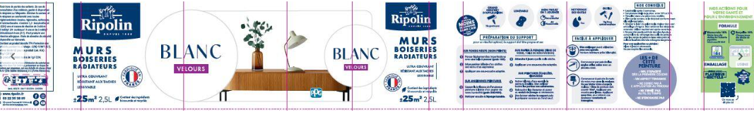 Cette peinture Ripolin multisupports monocouche velours va sublimer votre intérieur. L’aspect velours est très tendance, il combine les avantages du mat et du satin et est un excellent compromis entre ces deux aspects. Un peu plus brillante que la peinture mate, elle est cependant beaucoup plus résistante face aux agressions. Son aspect velouté permet de gommer légèrement les imperfections des murs. Ce produit convient parfaitement pour vos murs, portes, plinthes, boiseries et radiateurs. Facilement lessivable, elle convient également aux murs des pièces exposées à d'éventuelles projections ou salissures : chambres d'enfants, couloirs, salles d'eau, toilettes, montes escaliers, etc. La peinture velours est couramment utilisée et la plus polyvalente des finitions. Elle donnera un bel aspect uniforme à toutes vos surfaces, et vous assura une bonne tenue de la couleur dans le temps. Les avantages de cette peinture Ripolin sont multiples : sa texture est légère, facile à appliquer, et vous obtiendrez une opacité optimale en une seule couche (sec au toucher en 1 heure et recouvrable si nécessaire après 4h). La peinture ripolin est très facile d'entretien, et vous garantit une finition parfaite et soignée, de haute qualité. Pour un résultat optimal, utiliser un rouleau à fibres 10mm pour un film lisse ou 12mm pour un film poché ; un pistolet ; une brosse à bout rond ou brosse à rechampir. Pour les boiseries et les angles, utiliser un pinceau rond ou à rechampir. Cette peinture est fabriquée et conditionnée en France. Classée Qualité Air Intérieur A+, cette formule contient également moins de 1g/L de COV -composés organiques volatils- (soit 30 fois moins que la norme). Rendement 10 m²/l. Ce produit est disponible en plusieurs teintes et en blanc.