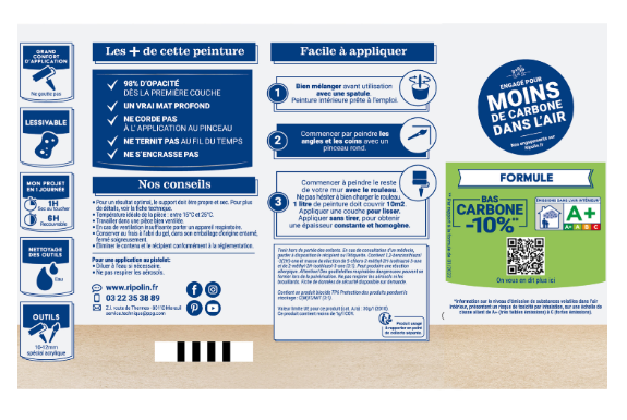 | Indication du geste de tri (triman) | Nos produits et emballages peuvent faire l'objet d'une consigne de tri. Pour en savoir plus : www.quefairedemesdechets.fr |