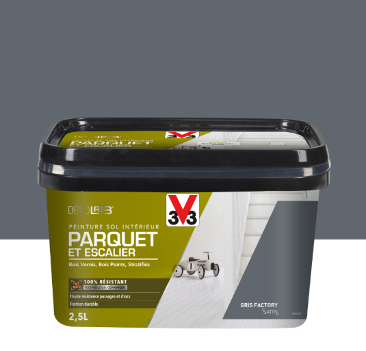 Peinture sol, parquet Escalier décolab® V33, gris factory satiné, 2.5 l