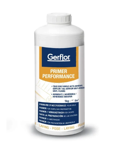 Le Gerflor Primer est un primaire d'accrochage permettant d'améliorer l'adhérence des sols souples auto-adhésives (dalles, lames ou rouleaux), de réduire la porosité, de bloquer la poussière et la graisse du support. Utilisation en intérieur sur tous types de supports (surfaces lisses et denses : planchers bois, ancien carrelage, chape fluide etc). Il est conseillé d'appliquer le produit au rouleau, une fois que la couleur du Primer passe du blanc au transparent, le support est prêt à la pose. Le primaire d'accrochage reste collant après séchage, ce qui est normal et cela garantit son efficacité. Produit sans odeur et nettoyage des outils à l'eau. / Un bidon de 1 kg permet de traiter une surface d'environ 8 m². Existe aussi en format 3 kg (25m²).