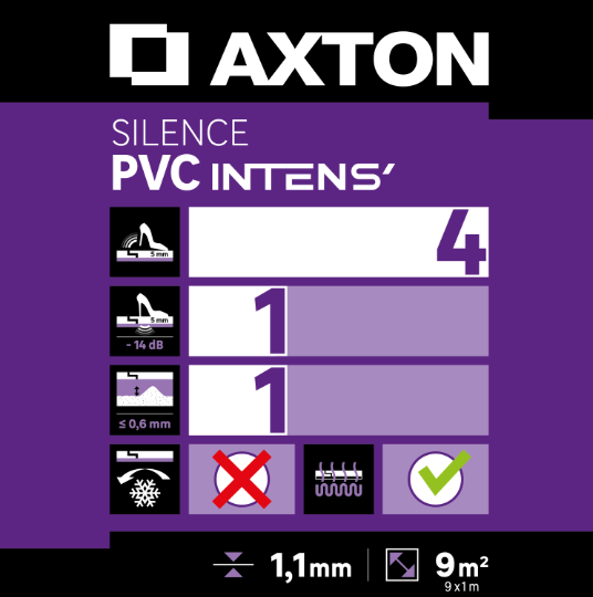 Sous-couche sol dalle / lame pvc avec pare-vapeur Intens' Ep.1.1 mm AXTON, 9 m²