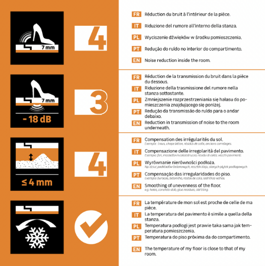| Réduction de bruit de pas dans la pièce du dessous (en dB) | 18 |