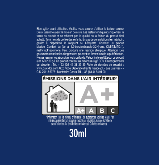 Le testeur Eclipse de Dulux Valentine vous permet de tester votre couleur ou vos mariage de couleur directement chez vous dans votre intérieur. Vous pourrez donc être sûr d'avoir choisi la teinte exacte qui s'accorde le plus avec votre décoration et àvotre mobilier. Grâce à son petit rouleau, vous pouvez appliquer directement et facilement la peinture sur la surface à peindre ou sur un carton blanc afin de pouvoir comparer la teinte avec des éléments de votre décoration intérieur et de vérifier les jeux de lumière sur vos murs.