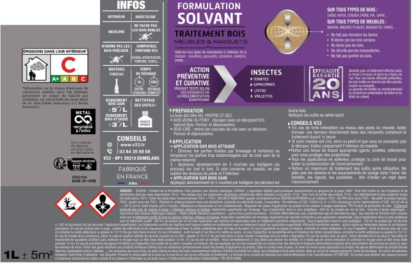 Traitement du bois meuble, parquet et boiserie V33 0.5 l